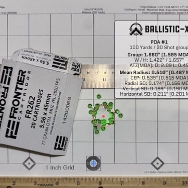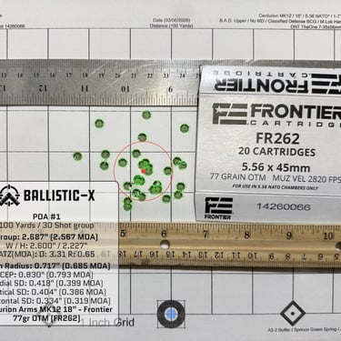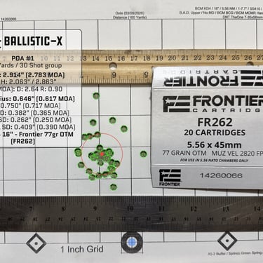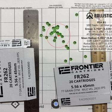 In this test, I evaluated Frontier Cartridge 77gr OTM (FR262), a load that appears to be a budget alternative to Black Hills MK262.