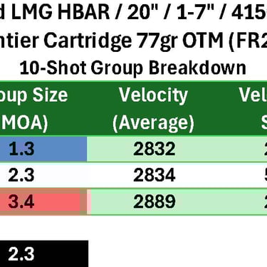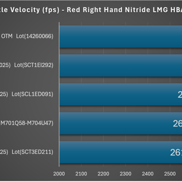 Frontier FR262 delivers impressively high velocities for a 77gr load, but performance is inconsistent. Across multiple barrels and even between lots, I saw large swings in velocity SD’s and accuracy, making this a questionable choice if consistency matters.