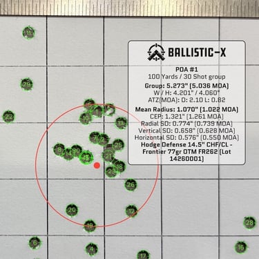 Hodge (Lot 14260066) delivered a strong 0.487 MR / 1.585 MOA ES / 290 A-ZED