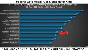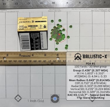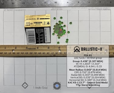 Best groups came from Federal Gold Medal 77gr and Sierra 69gr MatchKing