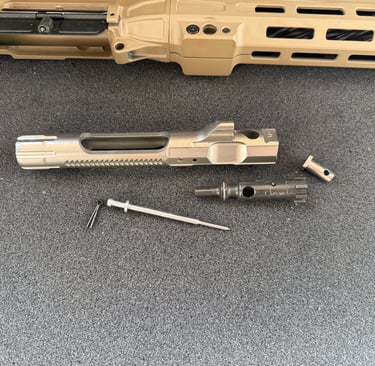 LWRC uses several proprietary components in this system. While key wear parts like the bolt, cam pin, and firing pin remain standard AR-15 components, other elements limit: