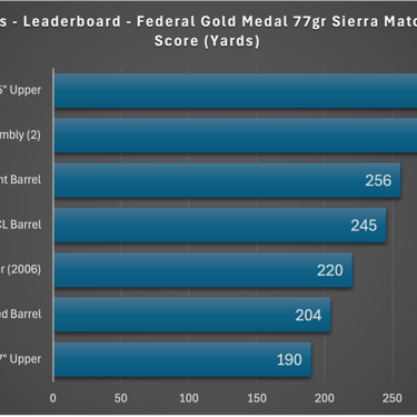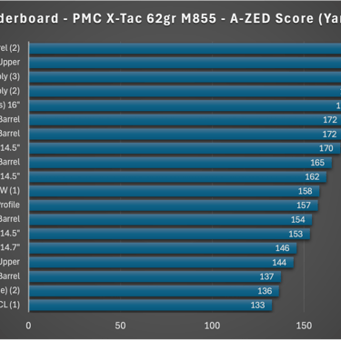 Performance here is noticeably behind other 10–13” barrels tested under the same protocol.