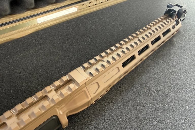 This upper was loaned to the channel by a subscriber and arrived with approximately 30 rounds through it. From a build perspective, it presents well, fit and finish are solid, and the monoforge design adds rigidity to the handguard