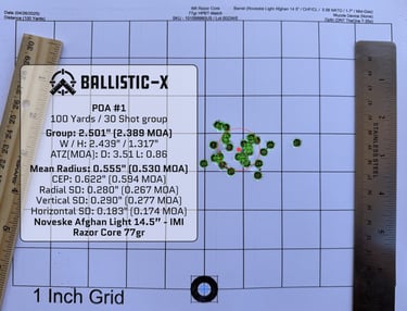 Best Performing Load: IMI Razor Core 77gr HPBT — 266 yards A-ZED
