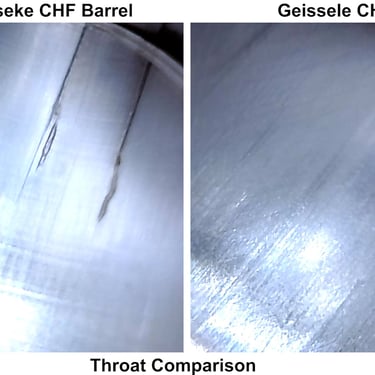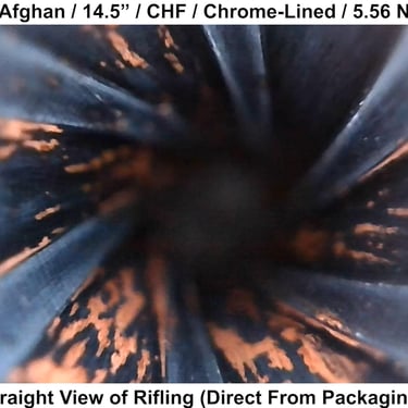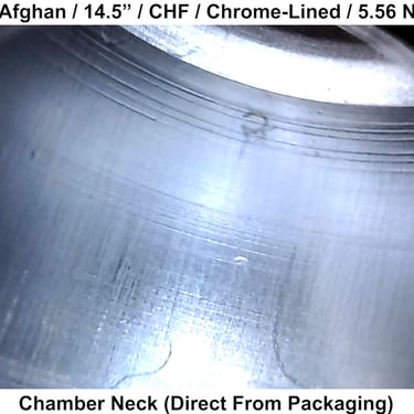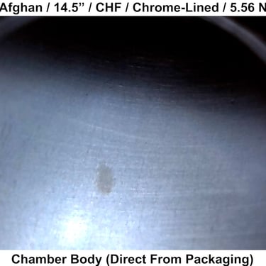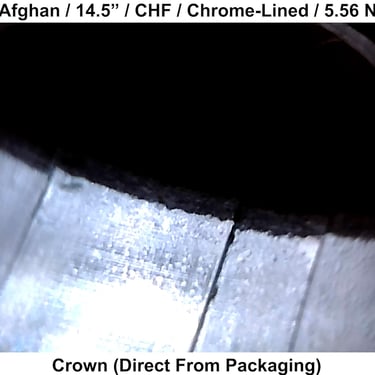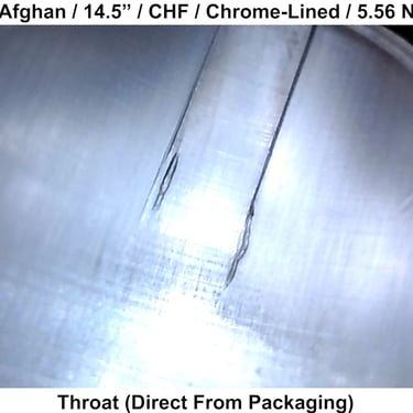 This barrel was inspected in new condition (factory test-fired only). Internal finish is consistent with expectations for a chrome-lined barrel. Minor imperfections in the throat and crown are present but not significant enough to clearly explain performance.
